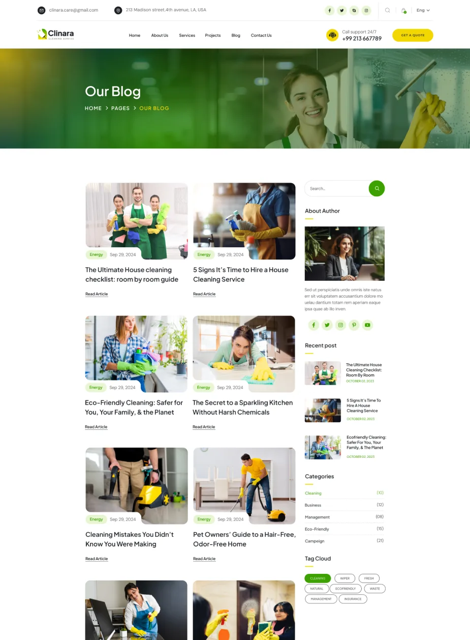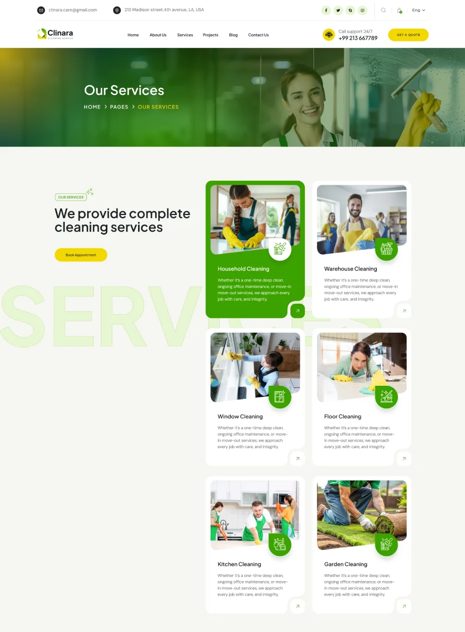 Clinara Cleaning Services WordPress Theme